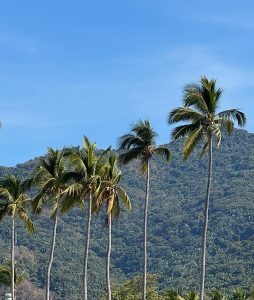 Separating sky from mountain the palm trees wave in the late-afternoon sea breezes.  The refreshing humidity nurtures the vegetation.  The steadfastness of seasons and the very greening of what to the naked eye is a dry zone bear witness to a created order that supersedes our understanding.  The yellow flag may issue a moderate warning to eyes who have ears to hear.  The commandment about not stealing may apply to every sun seeker.  Like the moisture in the sea breeze have we returned nurture to the land?