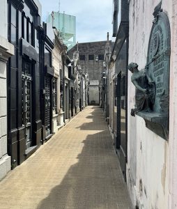 Where two or three are gathered in my name. The walkways between crypts would indicate that more than two or three are gathered here. There is a whole congregation of more or less faithful folk and family members laying around here. Expanding our notions of God in our midst might even proclaim hope to the searching. There is a renewed sense of value in “Crypt Currency” that has this lasting ability to outlive estates, wills, monuments and mausoleums. The stages of change and decay in every edifice speak to devaluation even in propped up Argentina.