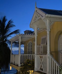 Later housing with filigree woodwork framing the soffits, became a desirable post plantation style in the development of tourist destinations. Food, sun and water anchor the attraction.